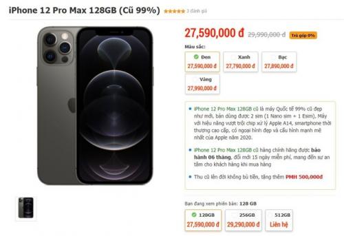 iPhone 12 Pro Max hàng 99% đang được các cửa hàng chào bán với mức giá khoảng 27,5 triệu đồng cho phiên bản 128 GB và 29 triệu đồng cho bản 256 GB. ...[+]
