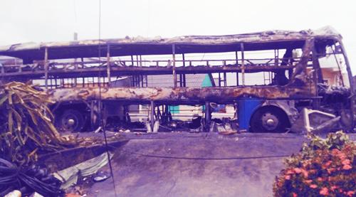 Các hành khách hốt hoảng, chen lấn thoát khỏi chiếc xe bốc cháy khi đi qua tỉnh Sóc Trăng. ...[+]